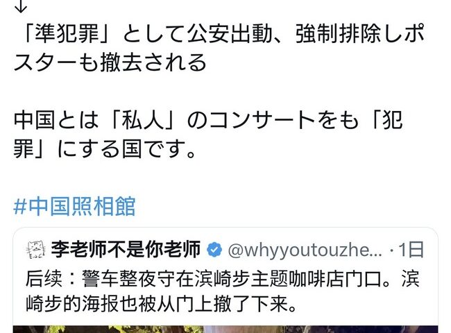 【悲報】浜崎あゆみの中国人ファンが喫茶店に集い盛り上げるも公安が出動し強制排除しポスターも撤去