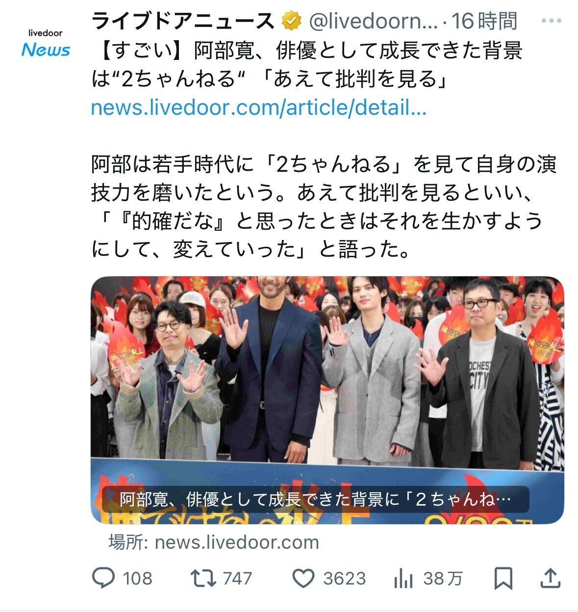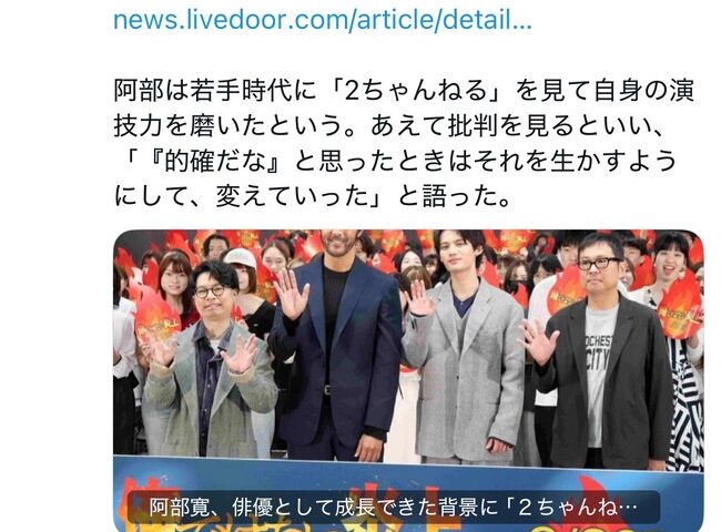 【朗報】阿部寛「僕が成長できた理由は『2ちゃんねる』的を獲た意見が多い」