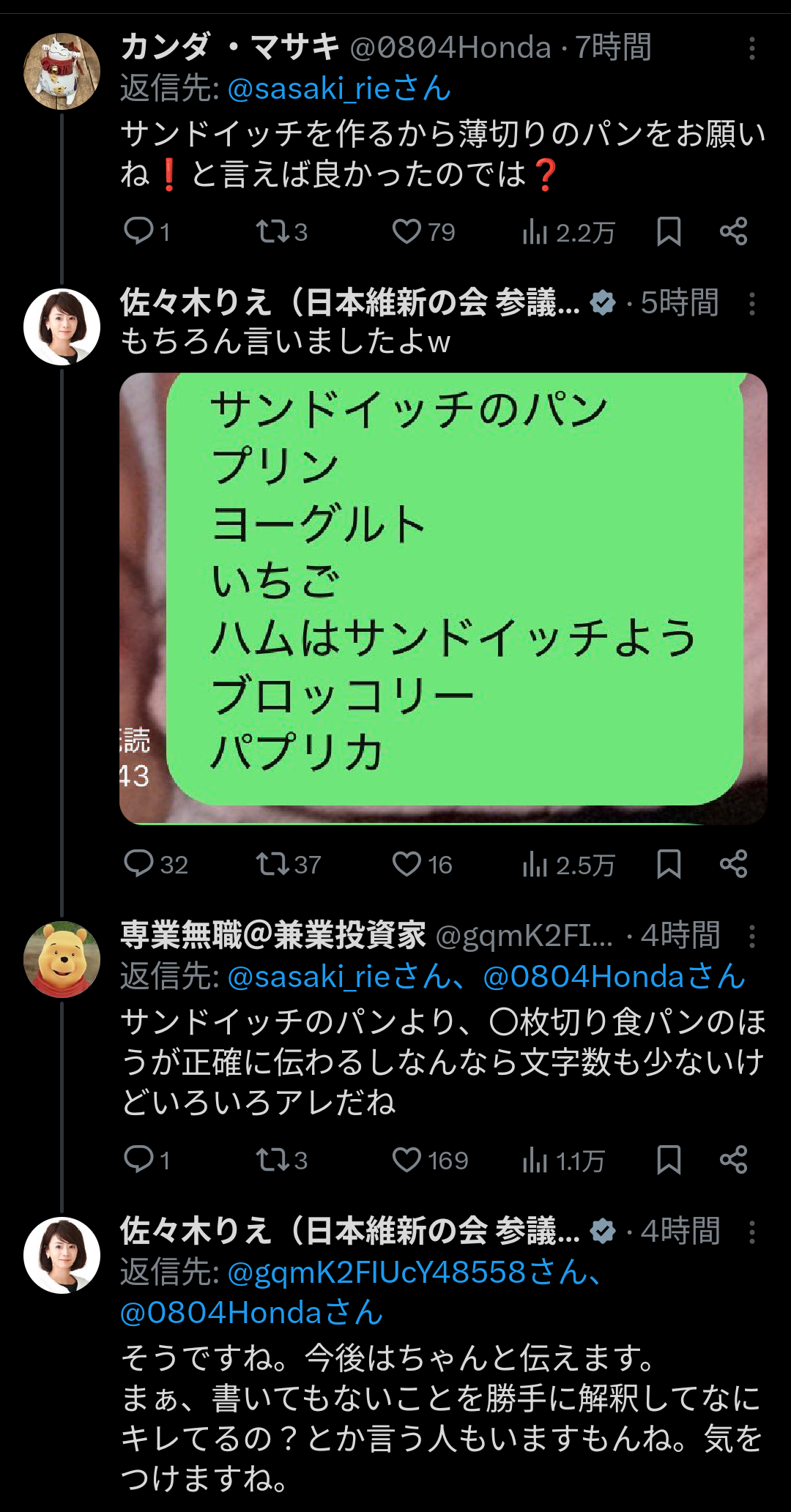 女議員「夫がサンドイッチ用に6枚切りのパンを買ってきました…」 ツイ民「6枚切りのレシピあるよ」