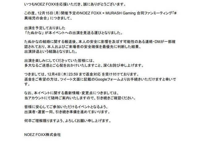 【悲報】たぬかなさん身の危険を感じイベント辞退wwwwwwwww