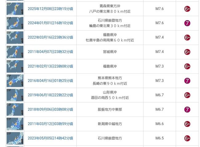 【画像】昨晩の青森県沖地震、歴代2位のマグニチュードだった・・・・・・