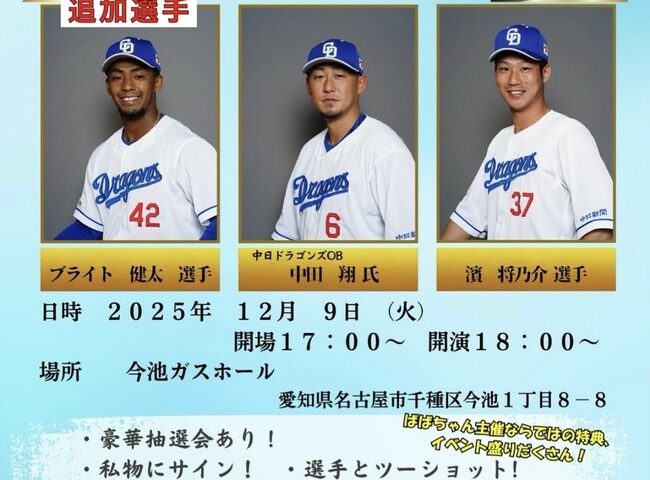 【画像】中日 濱選手、トークイベント直前に現ドラで移籍してしまう