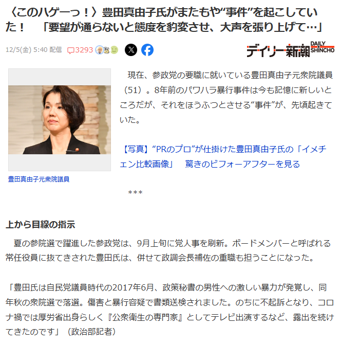 【速報】豊田真由子選手、同僚の議員に対して8年ぶり2回目のパワハラ
