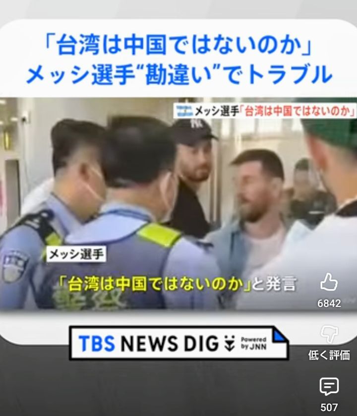 【画像】リオネル・メッシ、中国でブチ切れ「台湾は中国なんだろ?」