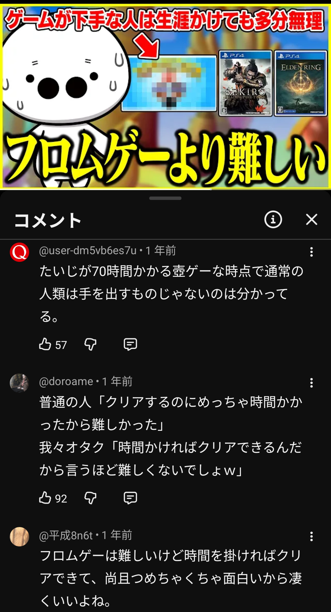 ゲーム配信者「フロムゲーは誰でもクリアできて簡単。pogoは下手なやつは一生クリアできない」