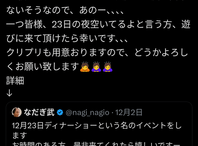 【悲報】元なだぎ武さん、クリスマスディナーショーのチケットが10枚しか売れず泣くwwww