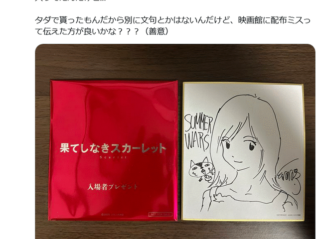 【悲報】果てしなきスカーレットを観に来た観客、観たのと違うキャラの色紙が配られてしまう