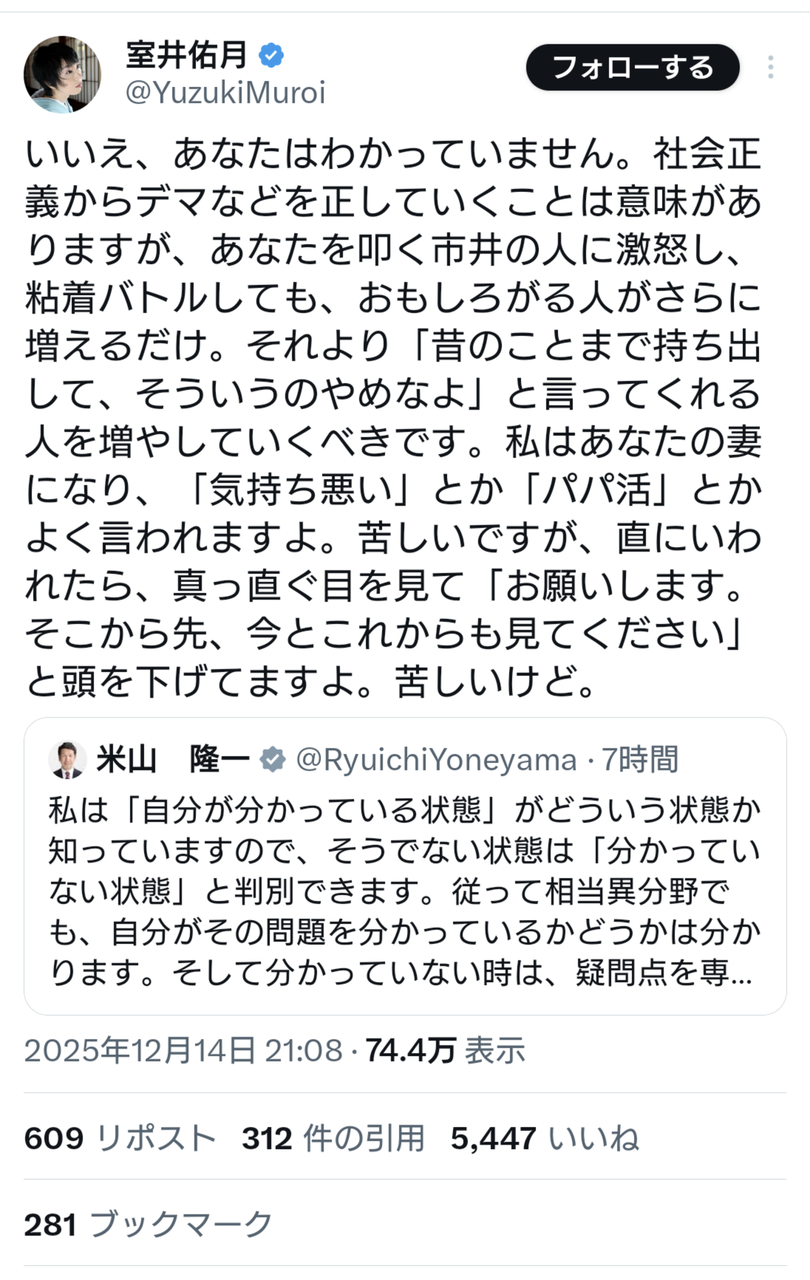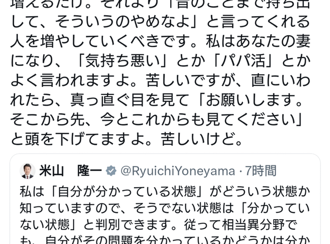 【悲報】米山隆一さん、とうとう室井佑月さんとレスバ開始