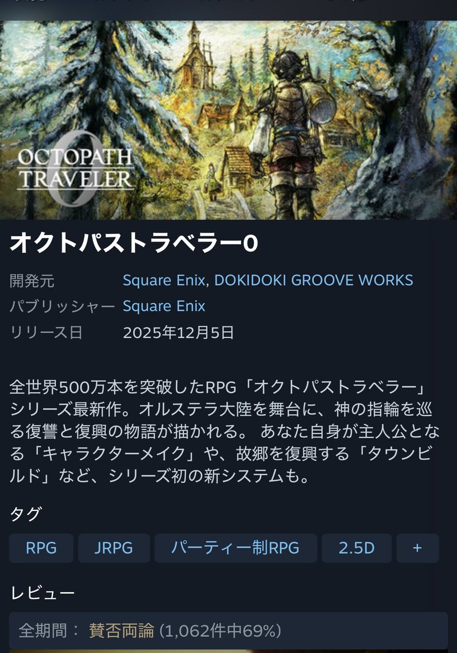 【悲報】Switch2待望の大作RPG、Steam評価が賛否両論にwwwwww
