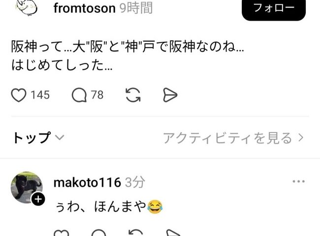 平均的タイガースファン「“大阪”と“神戸”で、阪神なのね」