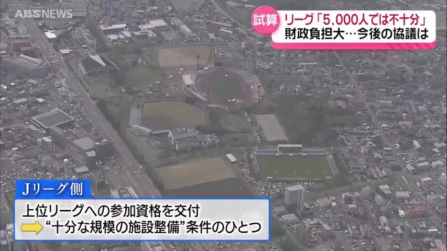 市によりますとJリーグ側は、施設が5,000人規模では、不十分であると指摘。