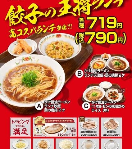 餃子の王将、高コスパの「平日ランチ」を全国で一斉スタートwwwwwwwww