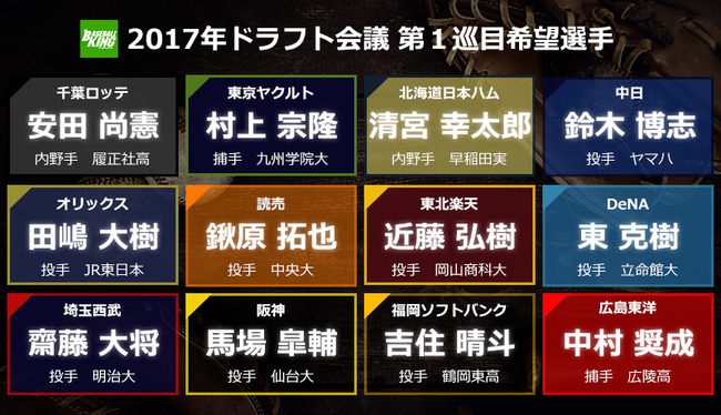 2017年の12球団ドラフト1位wwwwwwwwwww
