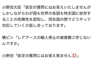 記者「レアアースが輸入停止になった時の対応策はあるのか?」小野田紀美「仮定の質問には答えません」
