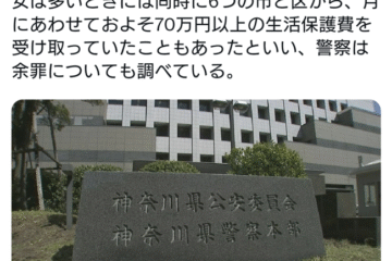 【悲報】同時に6つの市から生活保護を受け取っていた無職女、逮捕される