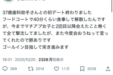 【悲報】22歳男性「37歳とのデートでフードコート行きました。」←X女性ブチギレwwwww